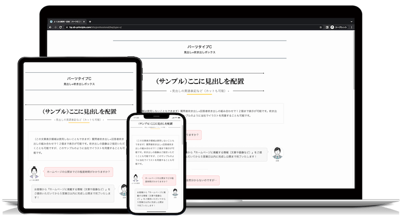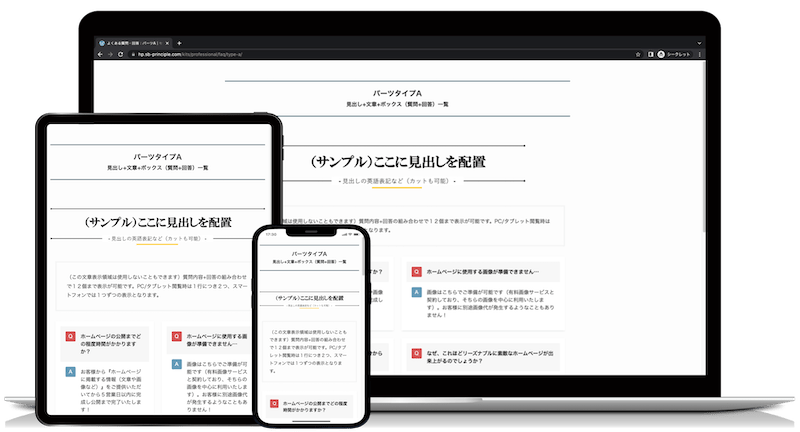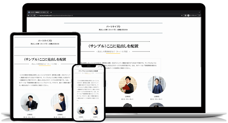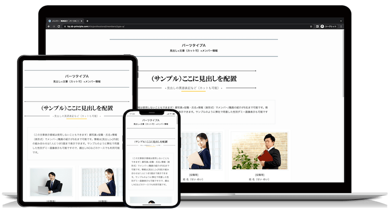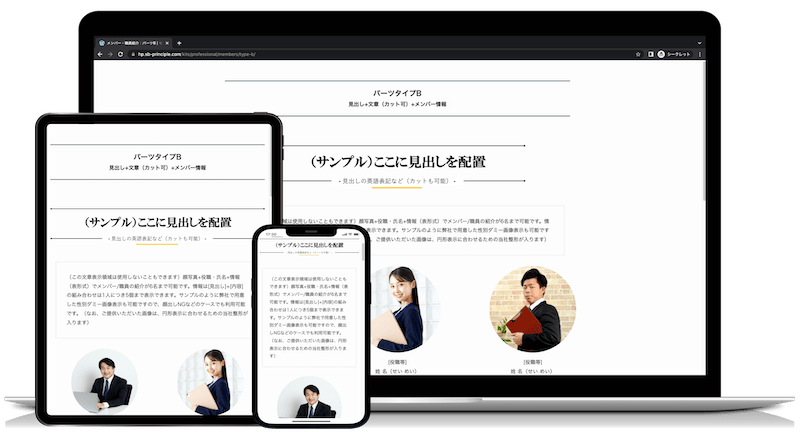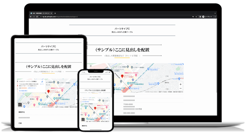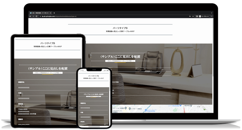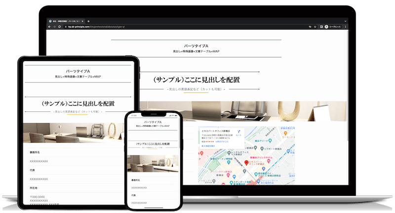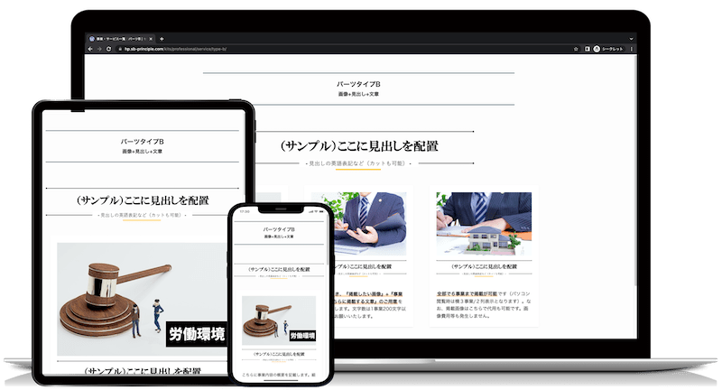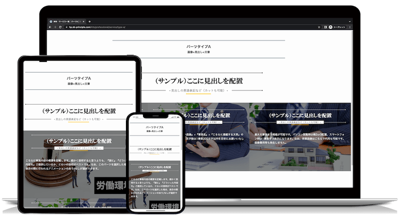 パーツ毎に複数のデザインタイプをご用意!各パーツから1タイプ(見出しは2タイプ)を選んで組み合わせれば、貴社専用ホームページが出来上がります!