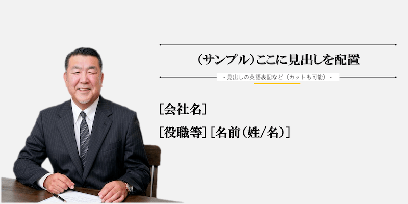 顔出しをしたくない場合は、代表者の写真部分をその他画像(オフィスの画像や、風景画像、イラスト等)での代用も可能ですので、お気軽にご相談ください。こちらで画像を用意した場合でも、追加費用は発生いたしません。